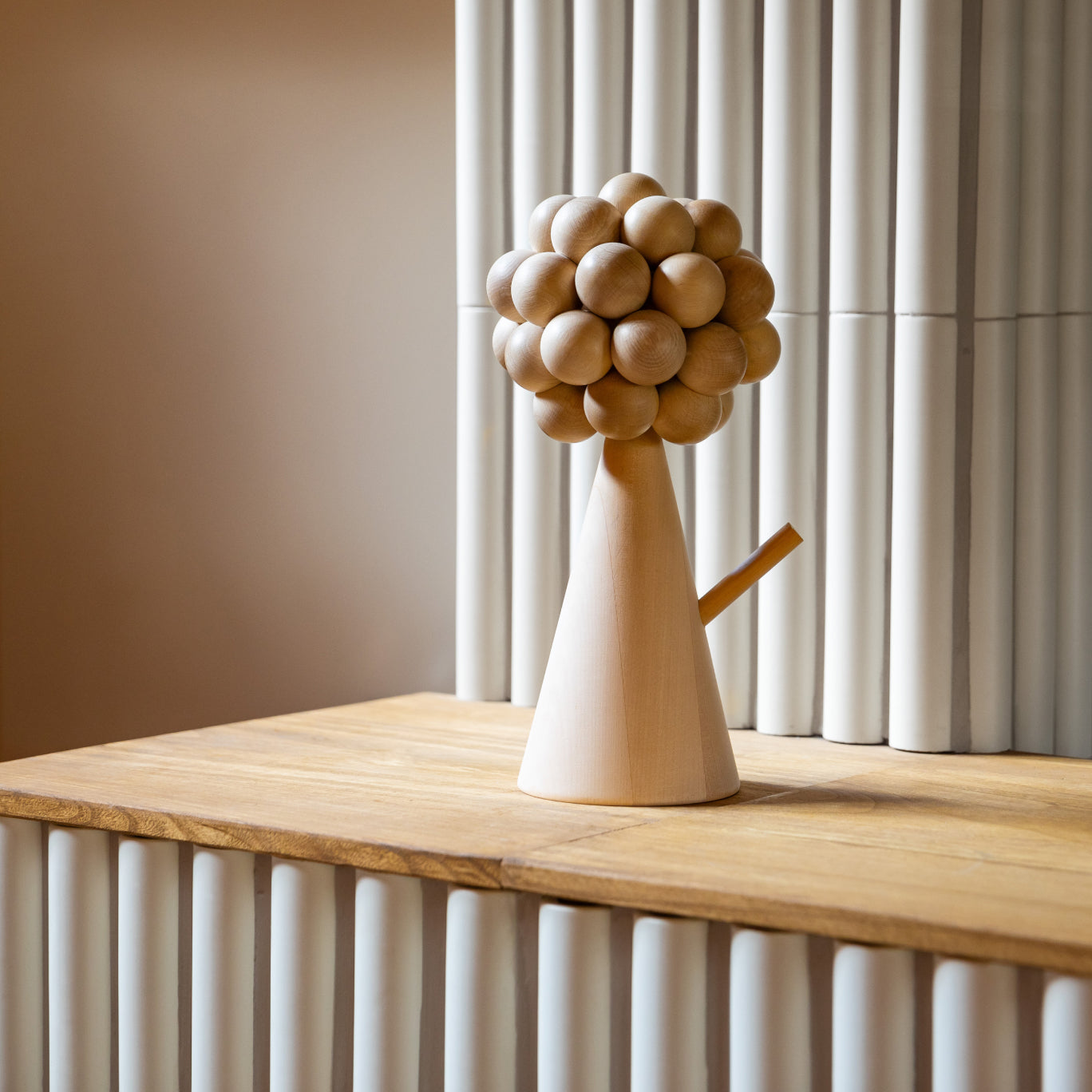 Mänty (Pine) sculptures and scent trees were conceived through a collaboration. They are designed by Mona Isotupa, the founder of Hetkinen natural cosmetic brand. Hetkinen and Aarikka are united through our similar values and the role of wood in our products. The design scent diffuser spreads the lovely scent of a pine forest to your home. Handmade in Finland.