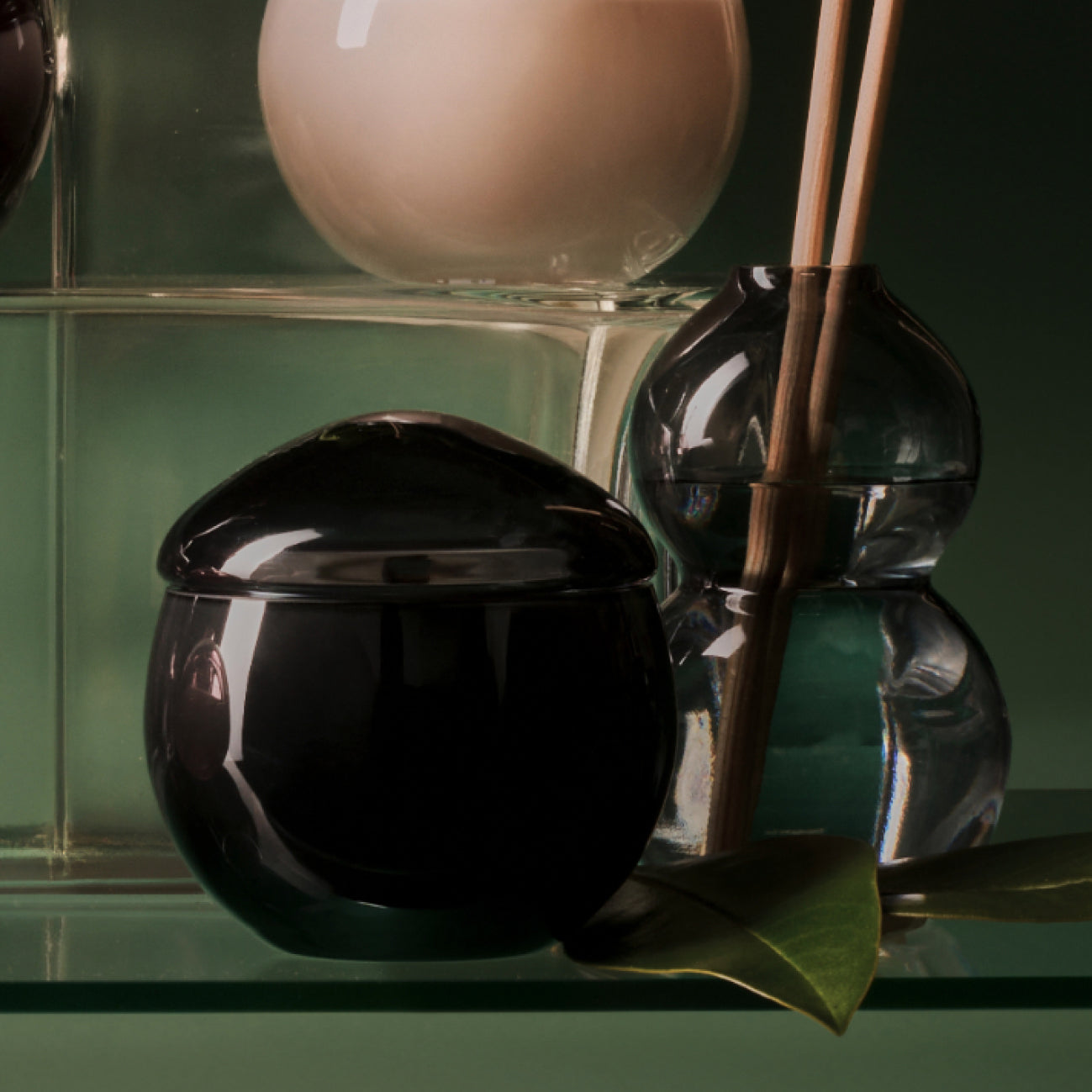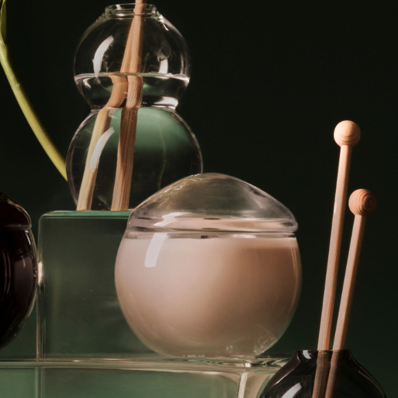 The glass bottle of the room fragrances and the glass jar of the scented soy wax candles, both made in Finland, beautifully echo Aarikka's iconic round design language. The wooden reeds of the room fragrances are a piece of pure forest, and the wooden wick of the scented candles, made from pine, burns cleanly and with low emissions—gently crackling with an atmospheric charm.