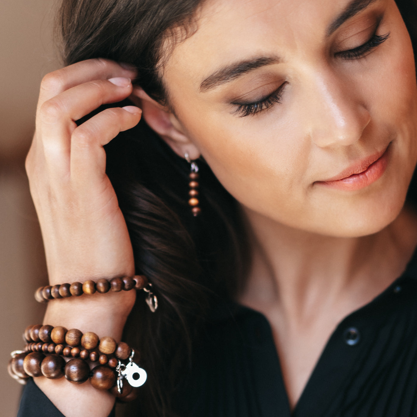 Every wooden Aarikka item is unique, because every piece of wood is unique. Products are handmade, visible in them and the volume they are made in - small volumes for a need. So the small details of life are visible. Light stripes visible in the wooden pearls are made by Kaija's husband Erkki Ruokonen's unique technique, which is still used to hand-dye all wooden products in Raisio.